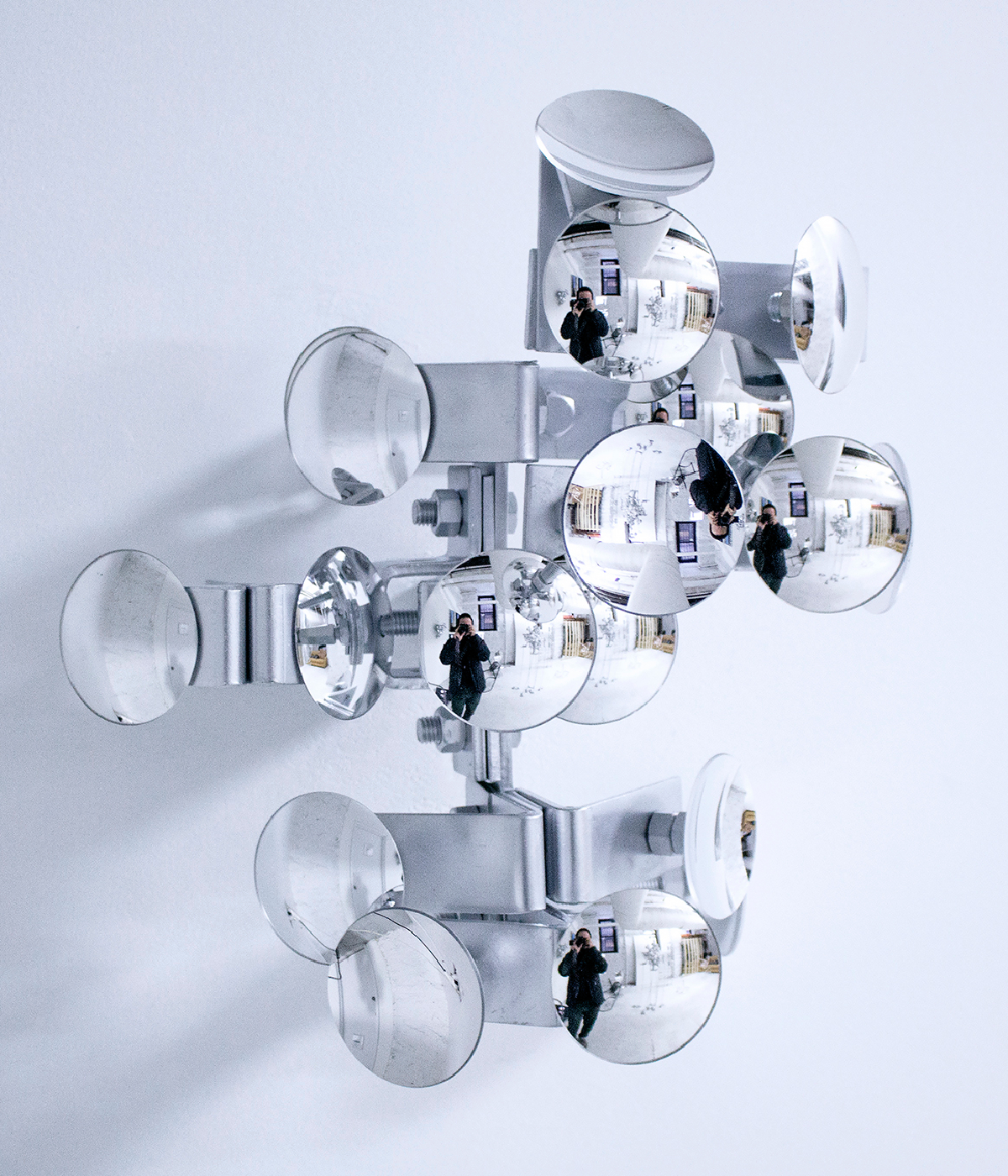 Rather than capturing a specific moment like a camera, the mirrors reflect a fragmented body seen from uncontrollable angles and different points in space simultaneously. The resulting viewer experience is a challenge to the impulse to project preconceived assumptions onto what we see: we are made to test our sense of familiarity with our surroundings and, more importantly, with ourselves.